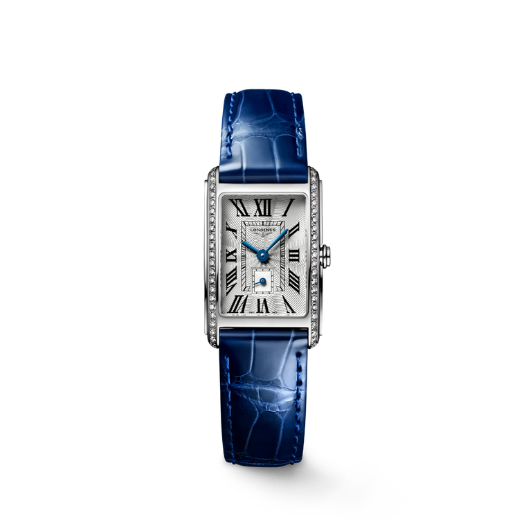 Longines DolceVita Silver “Flinqué” Dial With Diamond Set Case Blue Alligator Strap Quartz 20.80 × 32.00 mm [L5.255.0.71.7]